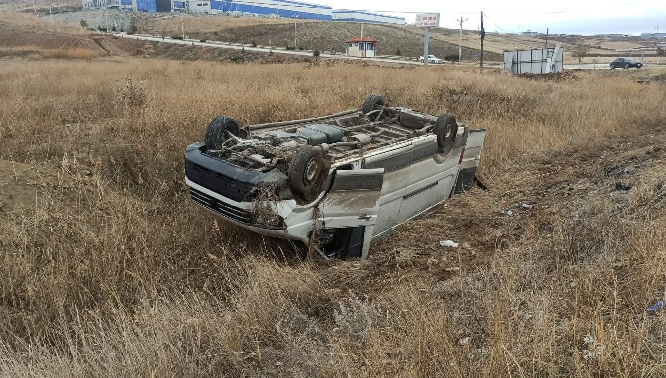 Refüje çarpan minibüs, daha sonra şarampole devrildi.