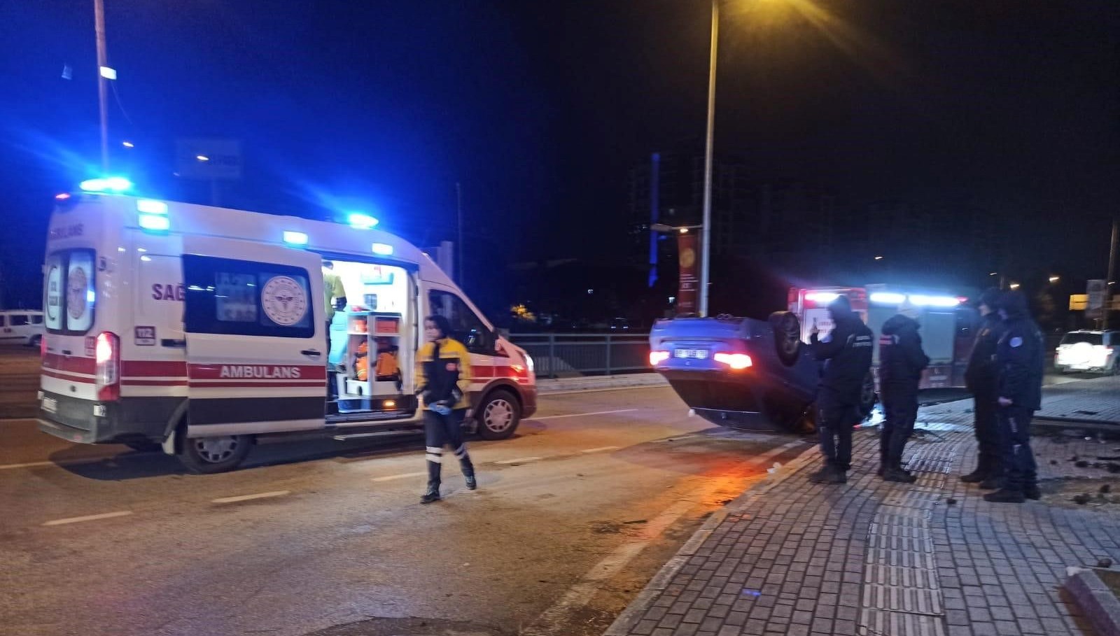Bursa’da merkezden İzmir istikametine seyir halinde olan araç, yağış sonrası kayganlaşan yolda şoförünün yönetiminden çıkarak takla attı.
