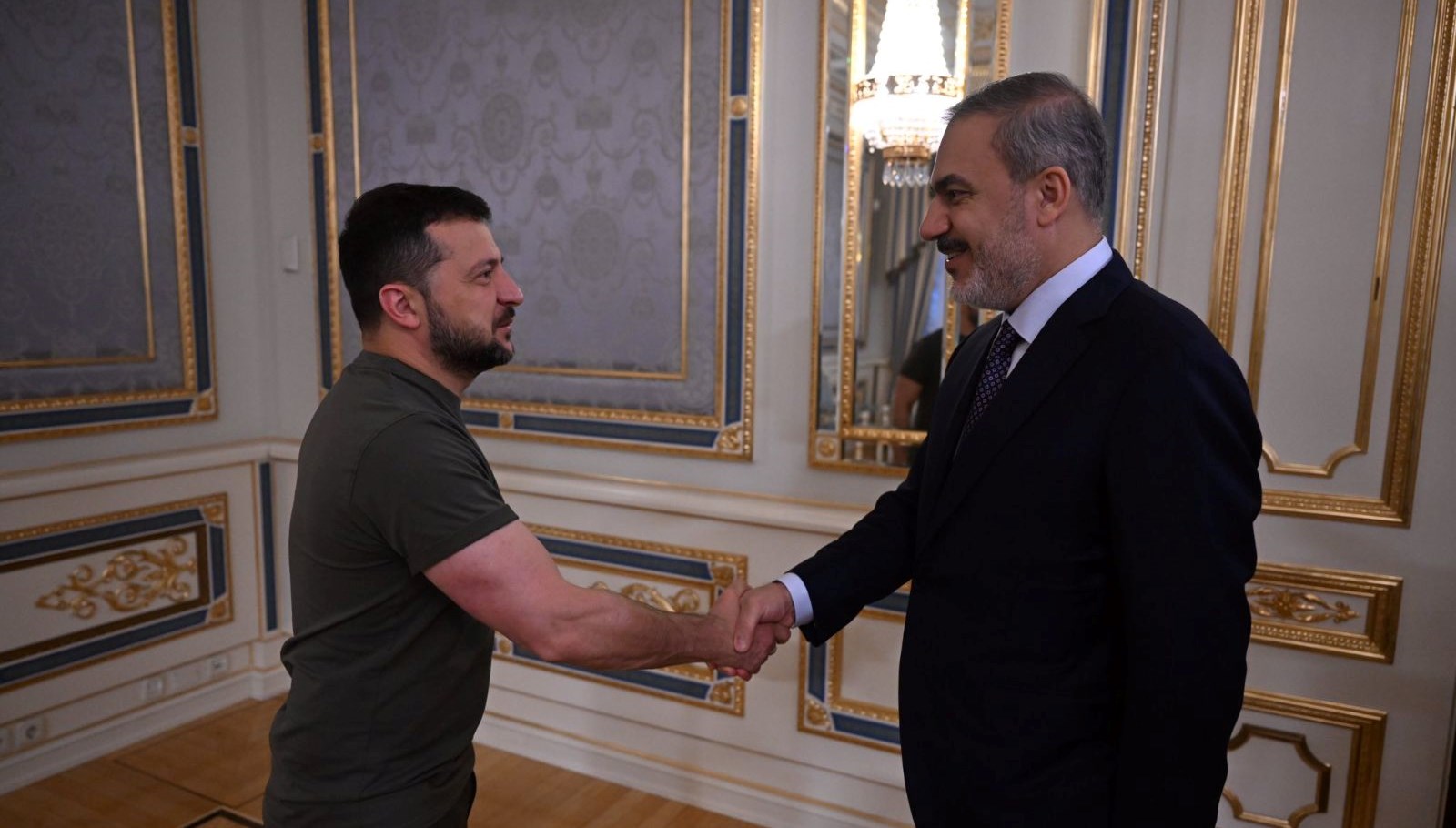 Hakan Fidan,Kiev’de Ukrayna Devlet Lideri Volodimir Zelenski tarafından kabul edildi.” denildi.