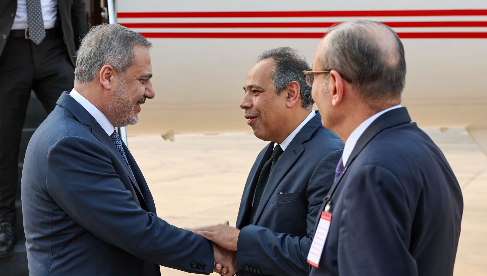 Dışişleri Bakanı Hakan Fidan çeşitli temaslarda bulunmak için geldiği Kahire Havalimanı’nda Mısır Dışişleri Bakan Yardımcısı Vekili Mohamed Zazou ve Kahire Büyükelçisi Salih Keyifli Şen tarafından karşılandı.
