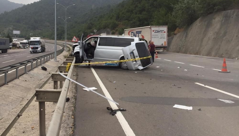 Bilecik’in Osmaneli ilçesi İçmeler Mevkiinde S.N. yönetimindeki minibüs, şoförün direksiyon hakimiyetini kaybetmesi sonucunda bariyerlere çarptı.