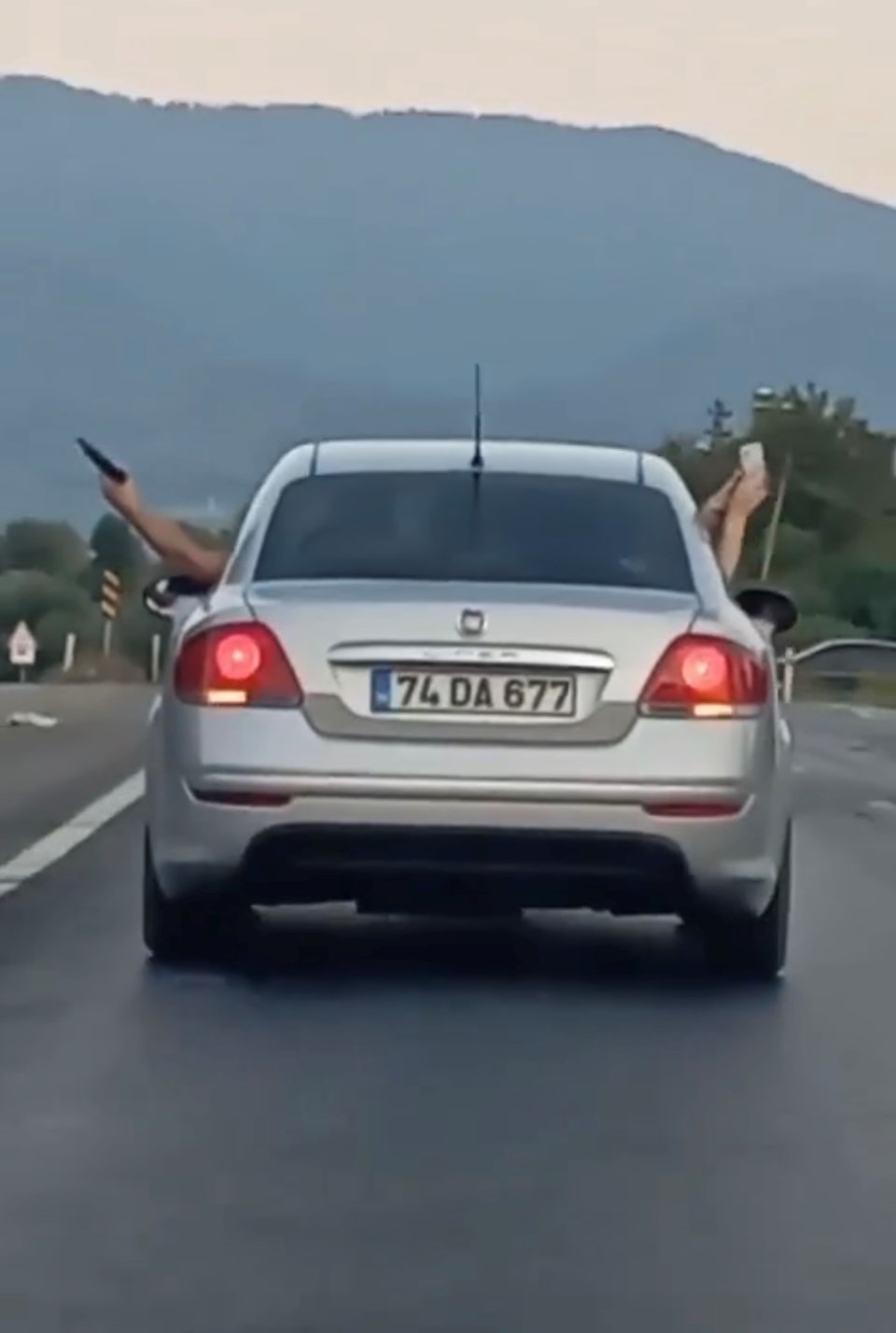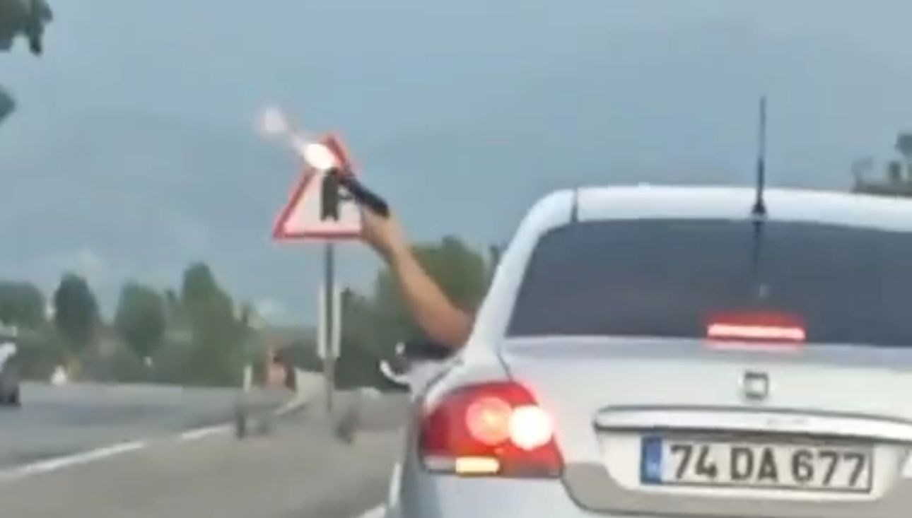 Otomobilden havaya ateş edilmesi yoldan geçen öteki bir araçta seyahat yapanlar tarafından da cep telefonuyla kayda alındı.