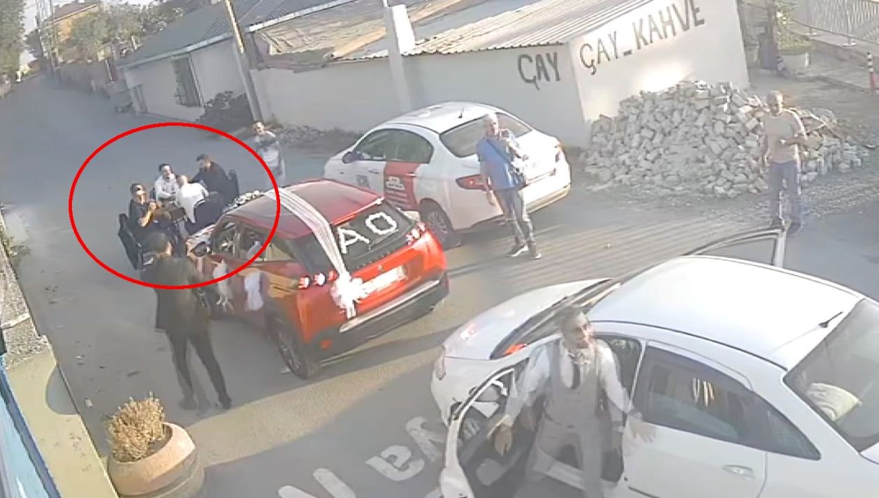 Düğün konvoyunun önünün kesildiği anlar, güvenlik kamerası ve etraftakilerin cep telefonu kamerasınca kaydedildi.