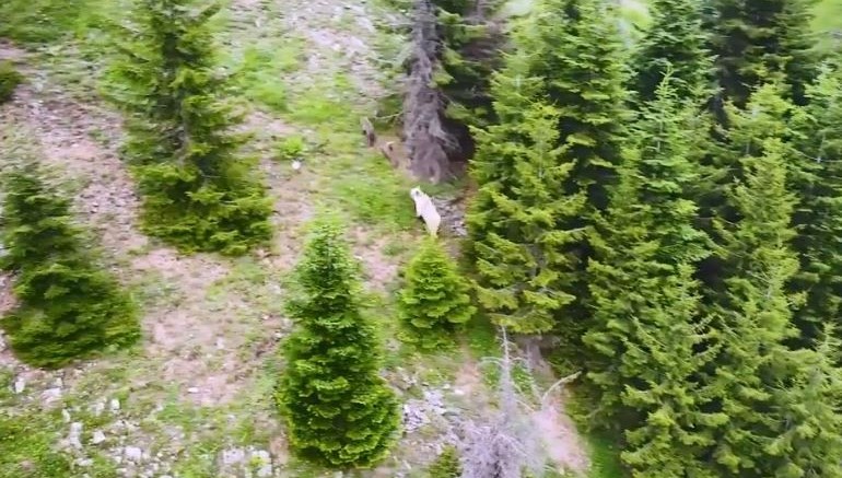 Drone uçuran Gümüş, tesadüf yapıtı iki yavru boz ayı ve annelerine rastladı. Bir süre anne ayı ve yavrularını takip eden Gümüş, ayıların uzaklaşmalarıyla imaj sona erdirdi.