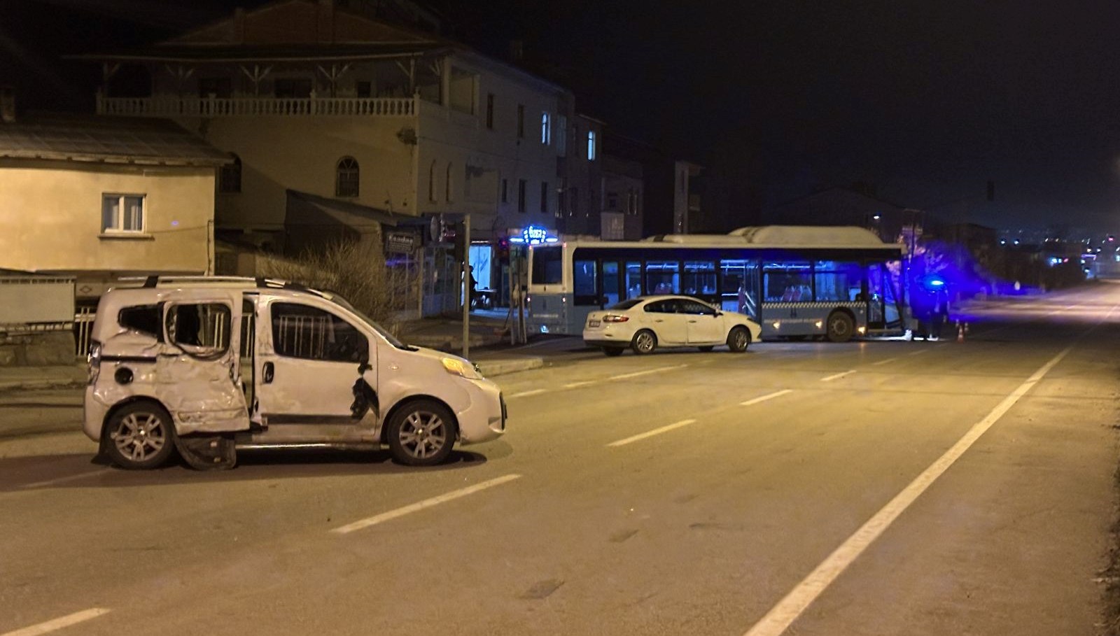 Ş.Y. yönetimindeki halk otobüsü, merkez Aziziye ilçesi E-80 kara yolu Ilıca Kavşağı’nda, O.N.Ç.’nin kullandığı hafif ticari araçla çarpıştı.