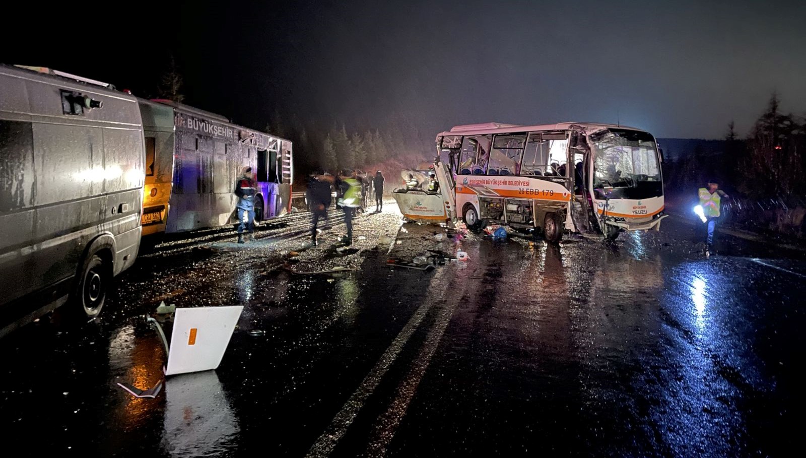 Savrulan halk otobüsü, karşı şeritten gelen Aykut B. idaresindekikaravana ve Hüseyin Ş. yönetimindeki Eskişehir Büyükşehir Belediyesi’ne ilişkin halk otobüsüne çarptı. Kazada 3 araç da kullanılmaz hale gelirken, Eskişehir-Afyonkarahisar yolu kısmi olarak trafiğe kapandı.
