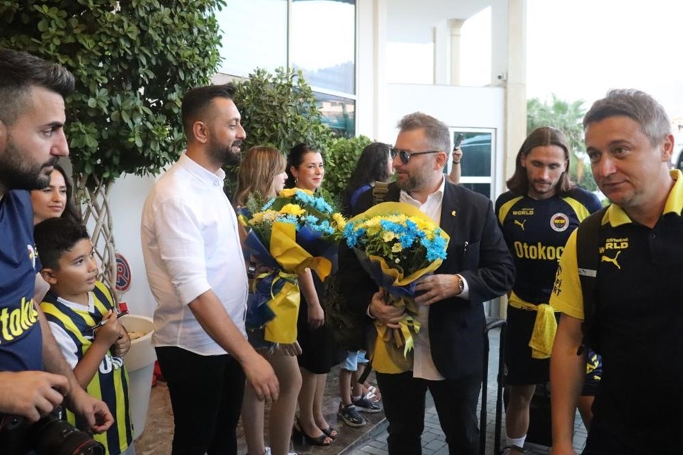 Sarı-lacivertli futbolcular ve teknik heyet, otobüsten indiğinde çiçeklerle karşılandı.