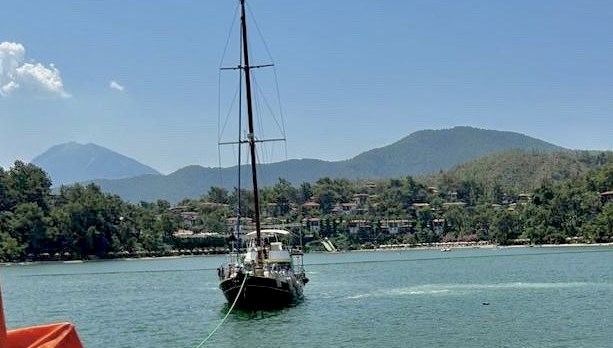 Tekne, ilçedeki marinaya yanaştırıldı.
