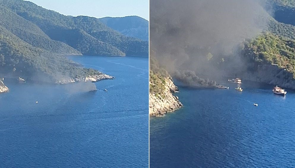 Kısa müddette büyüyen yangına, Muğla Orman Bölge Müdürlüğüne ilişkin hava araçları ile denizde Kıyı Güvenlik Takımları müdahale etmeye başladı.