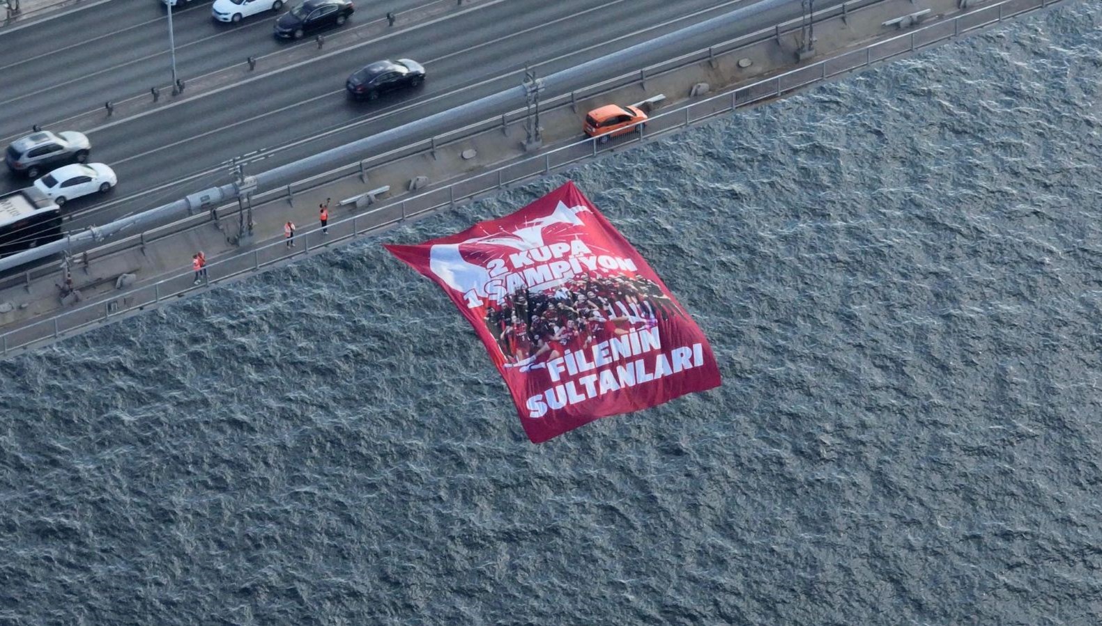 Filenin Sultanları’nın 2 Kupa 1 Şampiyon yazılı bayrağı, 15 Temmuz Şehitler Köprüsü, Fatih Sultan Mehmet Köprüsü ve Yavuz Sultan Selim Köprüsü’nde dalgalandı.