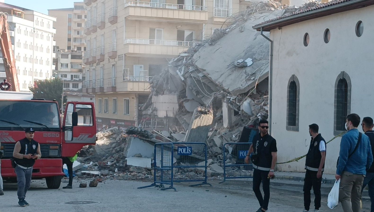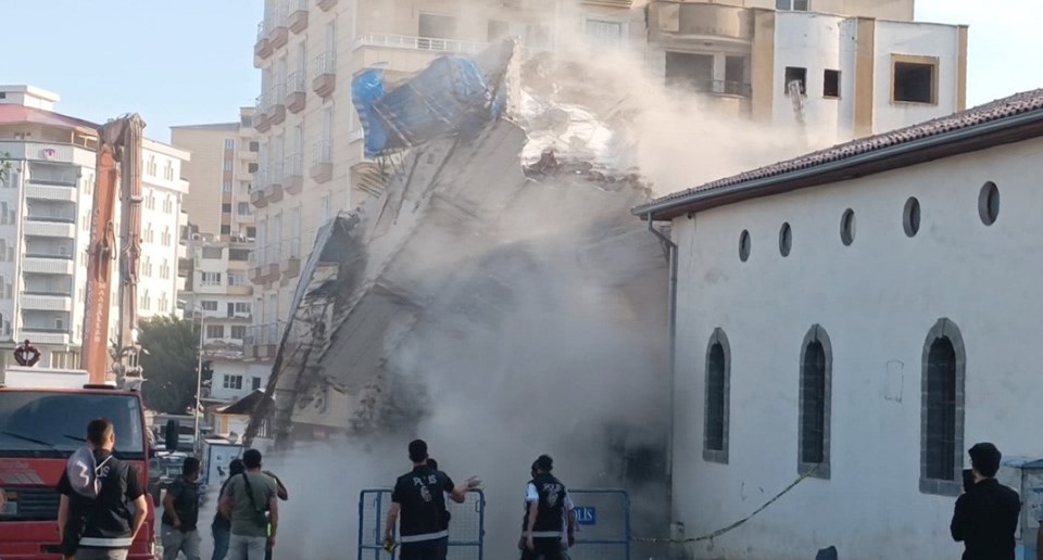 Polis nezaretinde, bina iş makinesiyle yıkılırken birdenbire çöktü.
