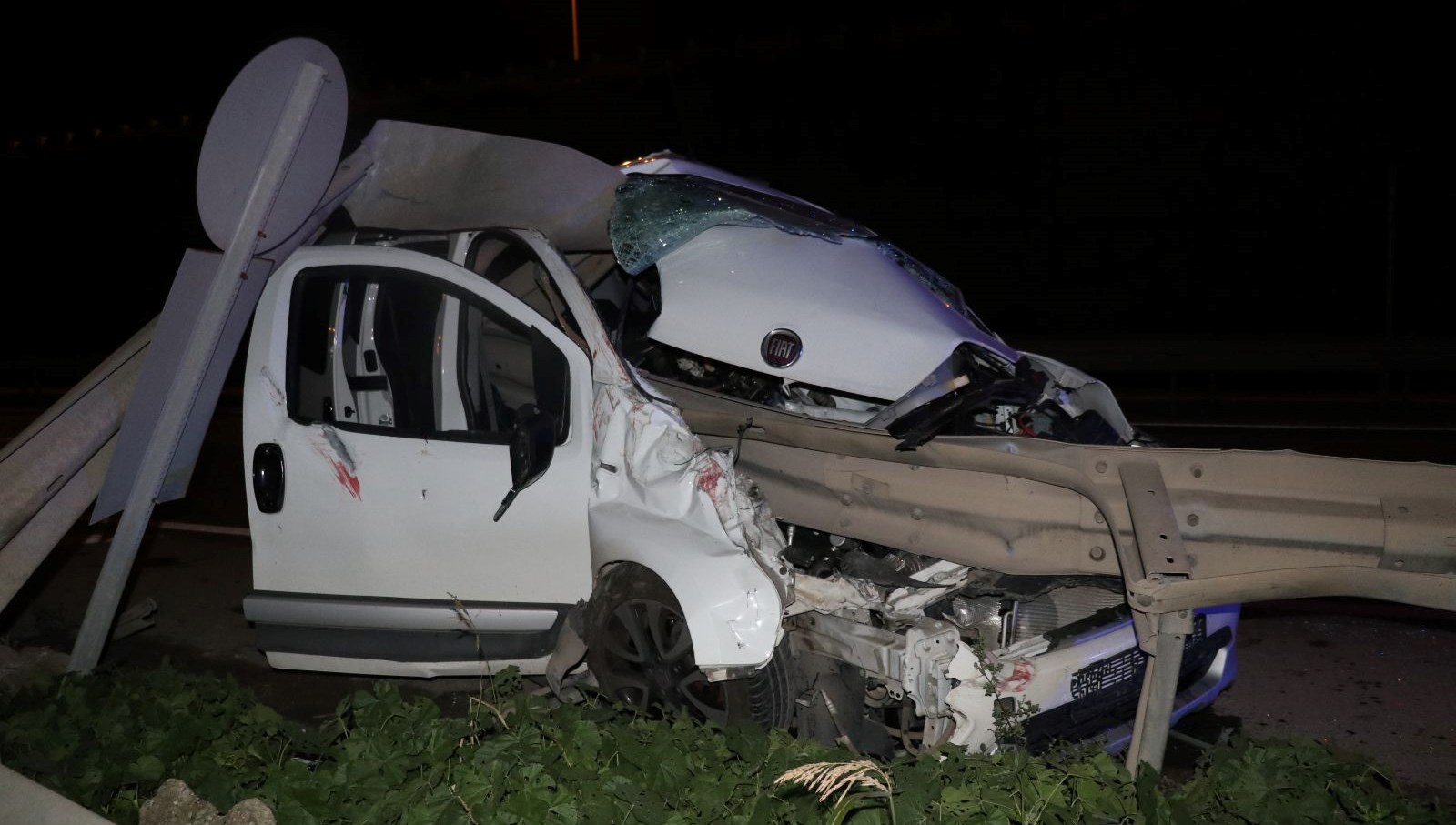 Hafif ticari araç bariyere saplandı: 1’i ağır 3 kişi yaralandı