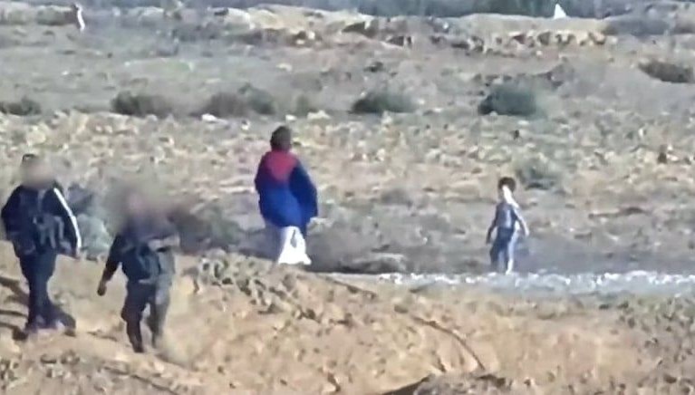 Görüntülerde Hamas militanları rehin alınan bayanı ve iki çocuğunu muhakkak bir bölgeye kadar bırakıp geri döndü.
