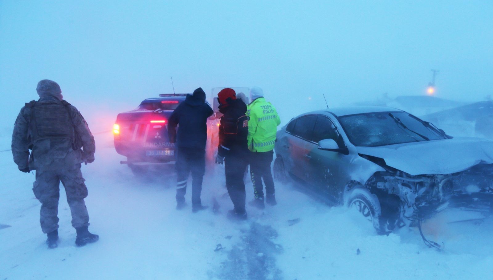 Kazanın, tipi nedeniyle yolda biriken kar kütlesinde mahsur kalan arabaya arttan gelen minibüs ile arabanın çarpması sonucu meydana geldiği öğrenildi.