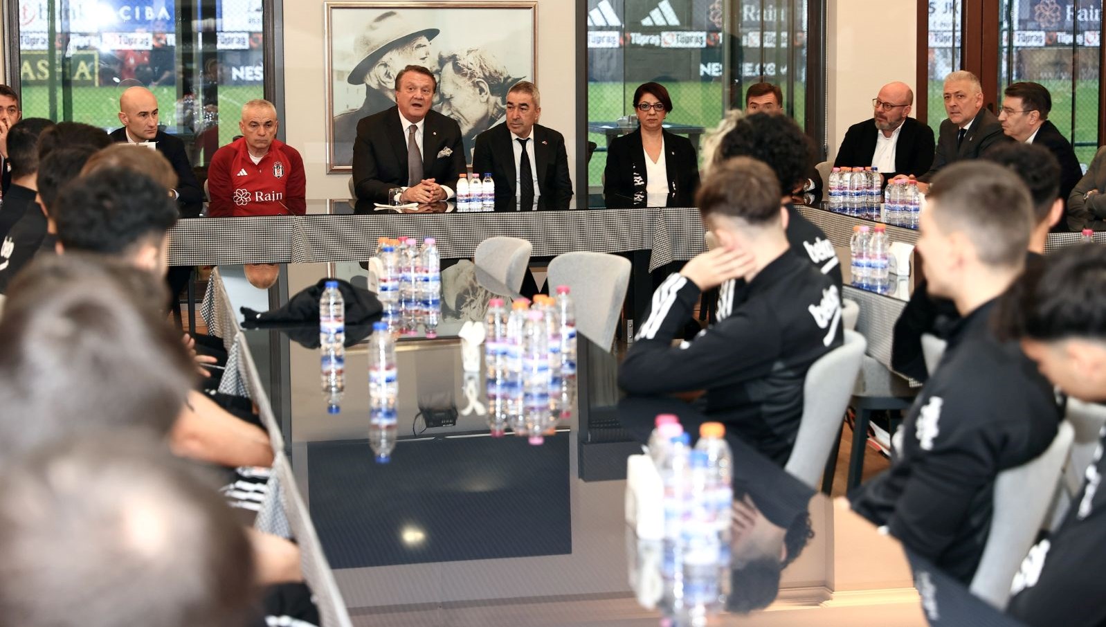 Arat, idare konseyi üyelerimizin de yer aldığı buluşmada; Teknik Yönetici İstek Çalımbay, teknik grup ve futbolcularla sohbet etti. Ekibe hitaben bir konuşma yapan Arat, siyah-beyazlılara Fenerbahçe derbisinde muvaffakiyetler diledi.
