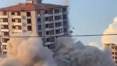 Hatay’da 15 katlı hasarlı bina dinamitle yıkıldı