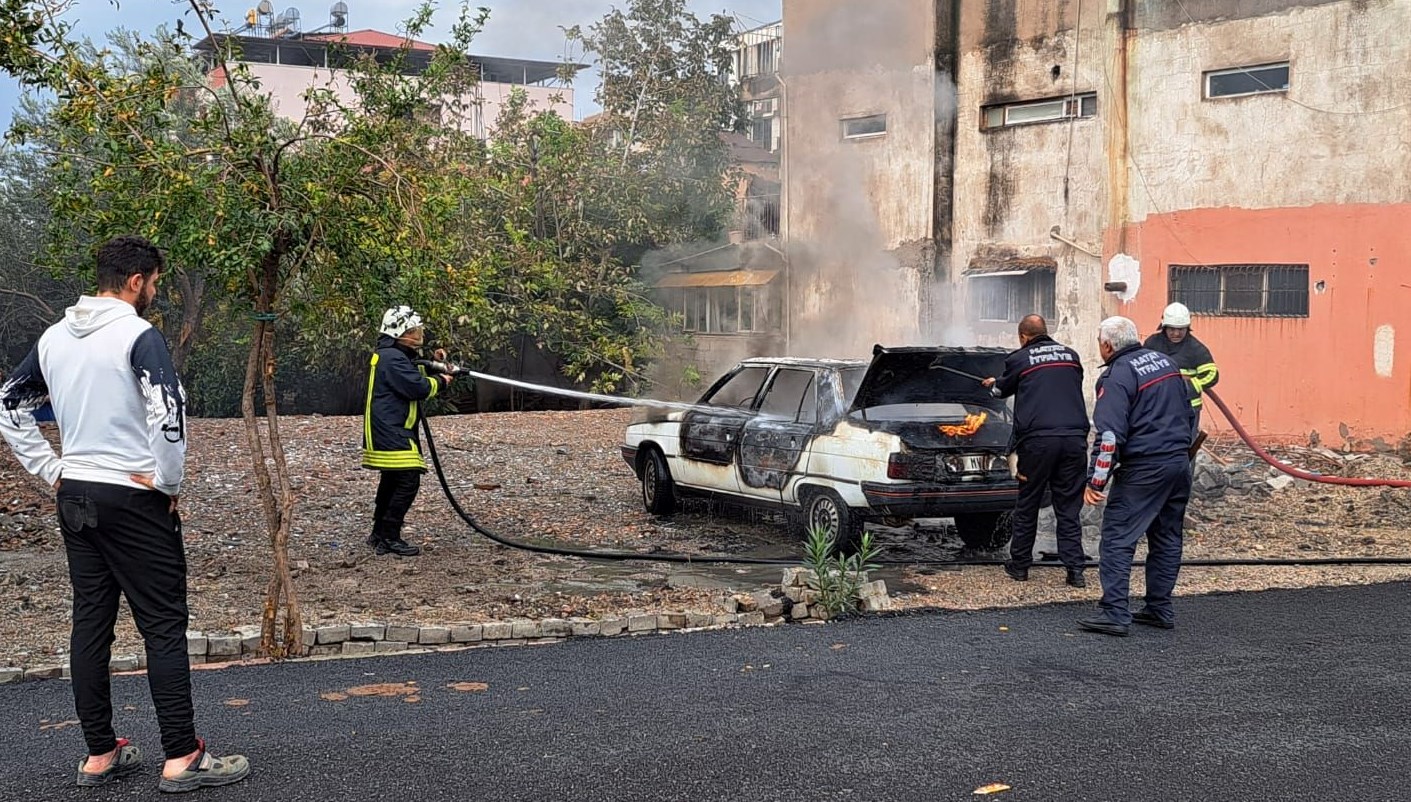 Otomobilin yandığını gören mahalle sakinleri, durumu 112 Acil Davet Merkezi’ne bildirdi.