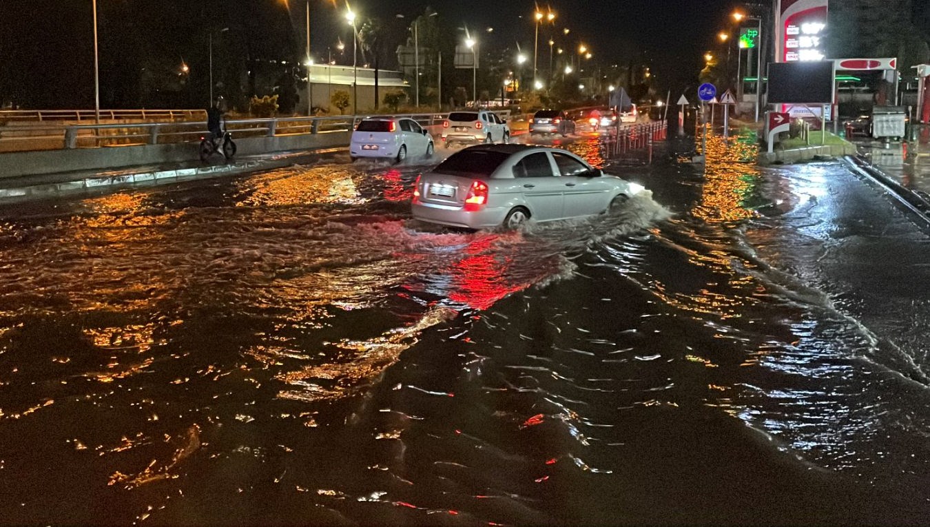 Gece başlayan ve şiddetini artıran gök gürültülü sağanak nedeniyle ilçedeki birtakım yollarda su birikintileri oluştu.