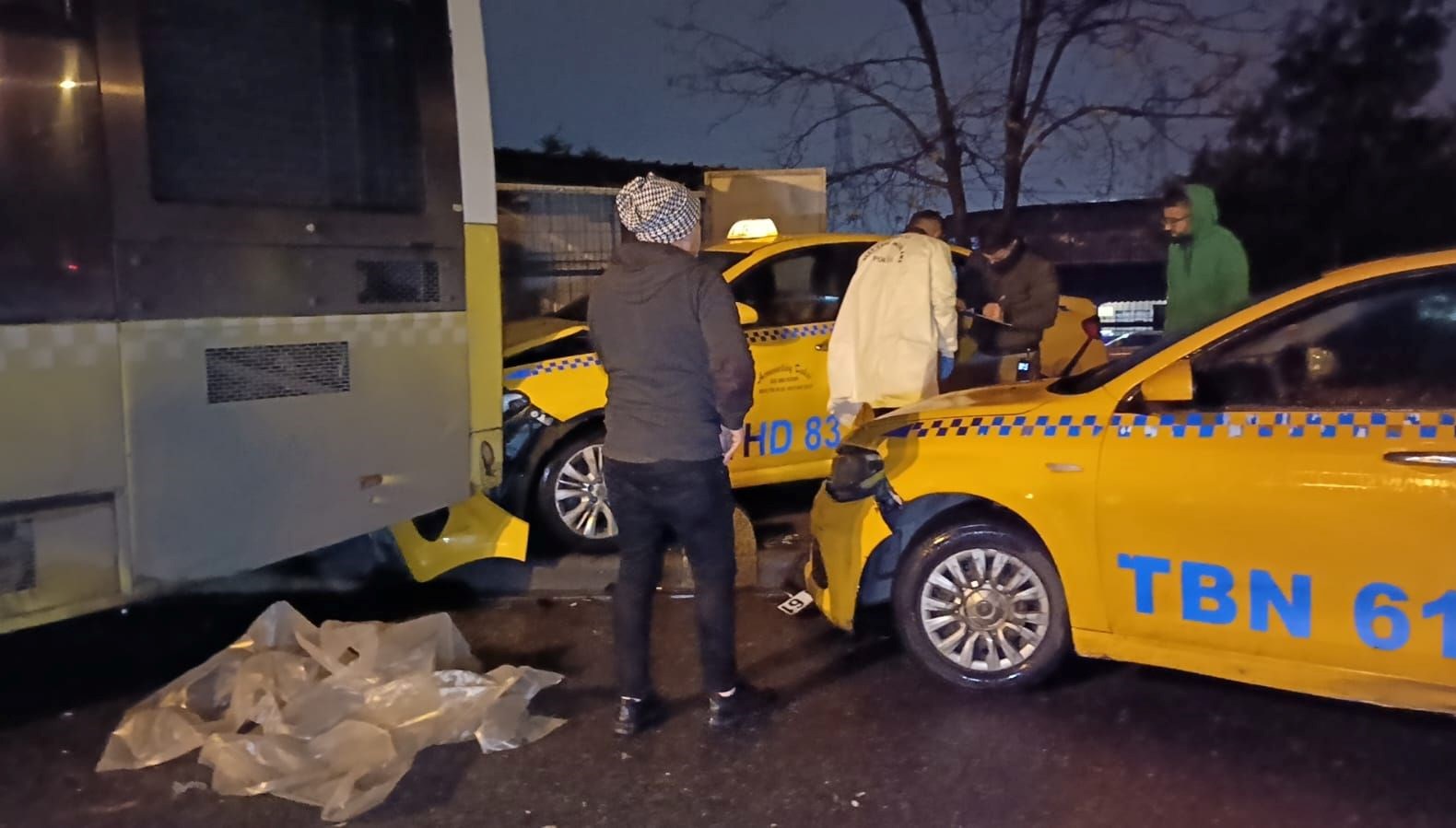 Kayan otobüs, sürücüyü ezdikten sonra durakta bulunan 3 taksiye çarparak durabildi.