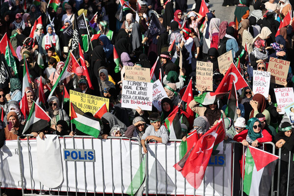 “Şimdi bunu yapanlar Gazze’deki kadın ve çocukların ölümüne sebep olacaklar. Hiç farkında değiller. Bu nasıl bir aymazlık? Utanmıyor musunuz? Kaç kere size söyledim. Ben burada şunu söylüyorum; öfkemiz çok büyük, tutamıyoruz ama Türkiye elinden geleni yapıyor. Şu anda masada oturuyorlar. İslam dünyası bakın Avrupa’nın, Amerika’nın her yerinde eylemler var. İnşallah bu eylemler artacak.”