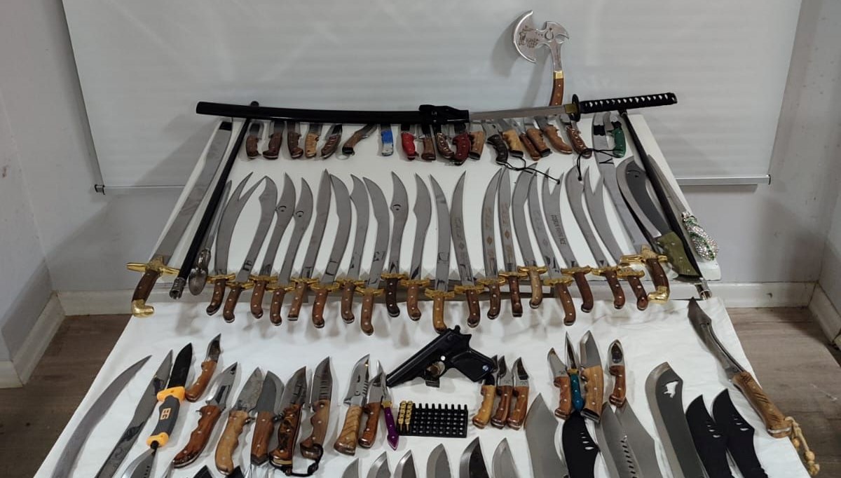 Aramalarda 1 kurusıkı tabanca, 10 kurusıkı mermisi, 62 çeşitli boyutlarda bıçak, 24 çeşitli boyutlarda kılıç ve 2 baston formunda bıçak ele geçirildi.