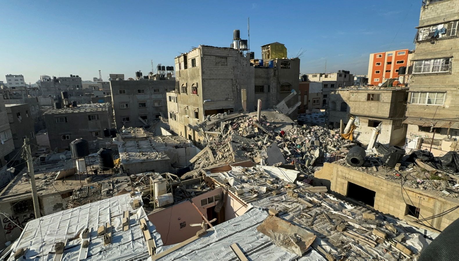 Görgü şahitlerinden alınan bilgiye nazaran, İsrail savaş uçakları, Gazze’deki Nuseyrat Mülteci Kampı yakınlarında Filistinli ailelerin yaşadığı bir binayı maksat aldı.