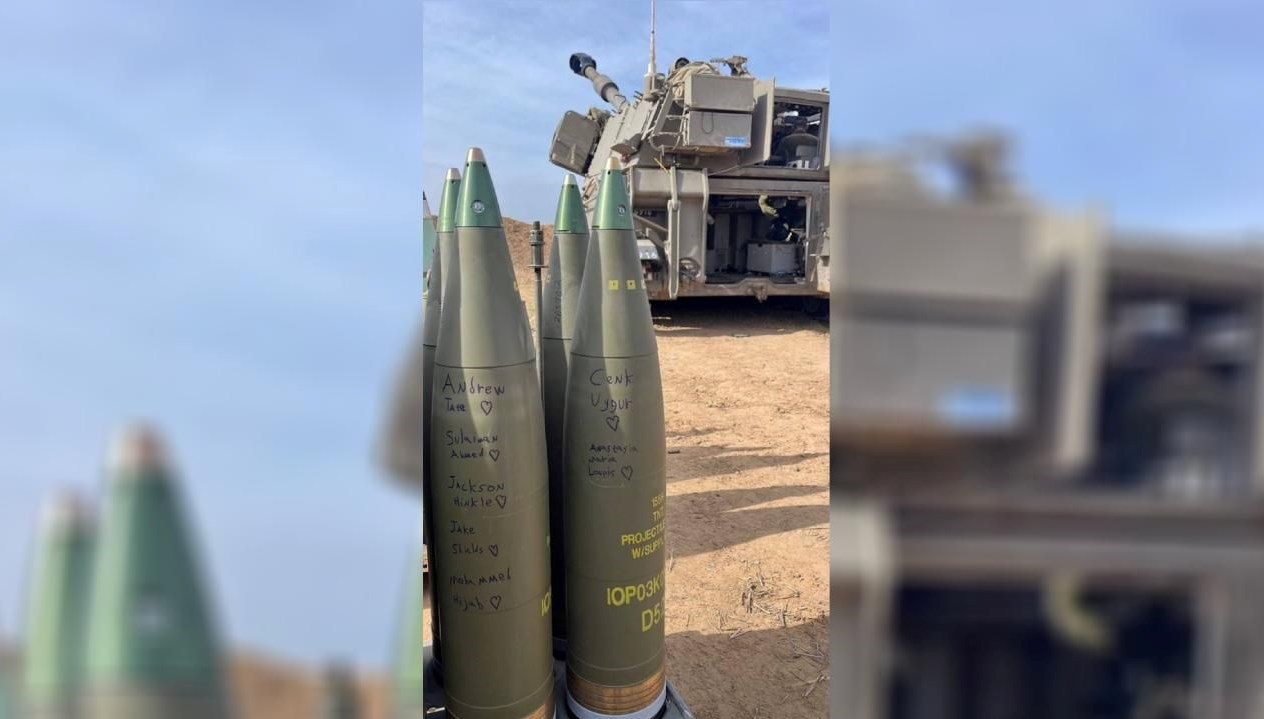 Sosyal medyada paylaşılan fotoğraflarda, daha evvel de çocuklara bombaların üzerine yazılar yazdıran İsrail ordusunun bu kere ABD’nin gönderdiği bombaların üzerine Filistin’i destekleyen tanınmış şahısların isimlerinin yazılmasına müsaade verdiği görüldü.