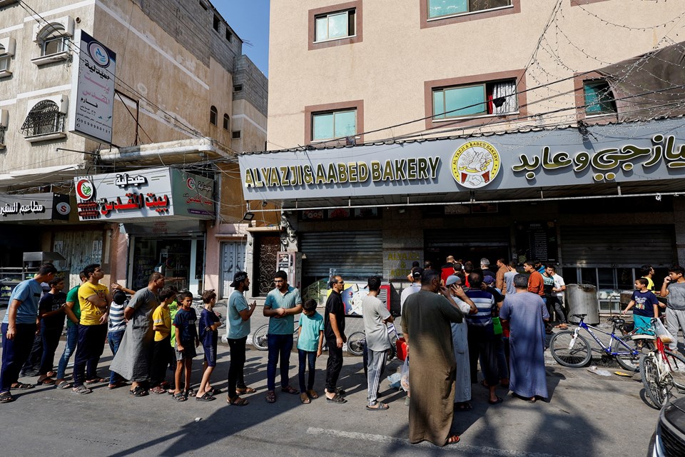 Gazzeliler açık olan fırınlardan ekmek alabilmek için saatlerce sıra bekliyor (Reuters) Gazze’de ekmek sayıları milyona yaklaşan mültecilerin temel besin kaynağı haline gelmiş durumda. Fırınların yok olması ve halihazırda vurulmamış fırınların yakıt zahmeti nedeniyle fonksiyonunu büyük ölçüde yitirmesi nedeniyle yüzbinlerce insan açlık tehlikesiyle karşı karşıya.