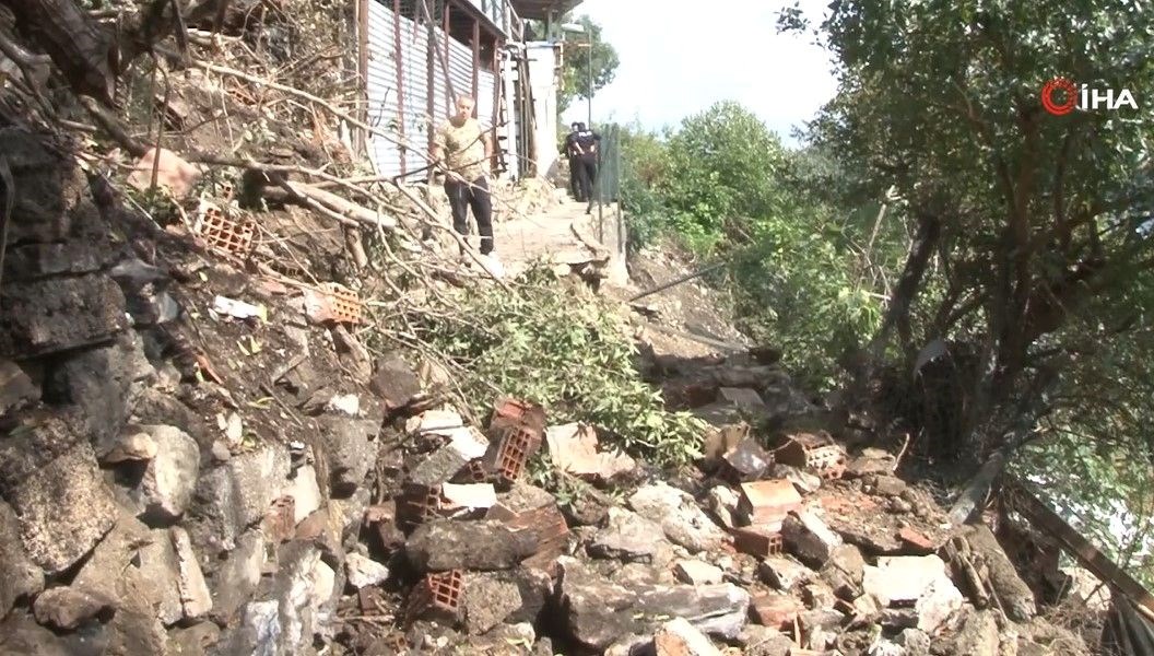 İstanbul’un Beşiktaş ilçesi Kuruçeşme’de, sağanak yağışla yumuşayan yamaçdaki kaya, konutların bulunduğu alandaki bir kömürlüğe düştü.