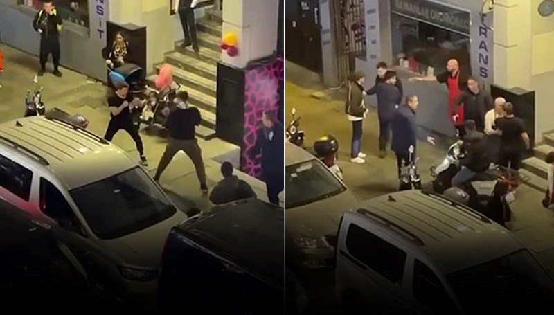 Tartışmanın akabinde şahıslar gardını alarak birbirlerine vurmaya başladı.