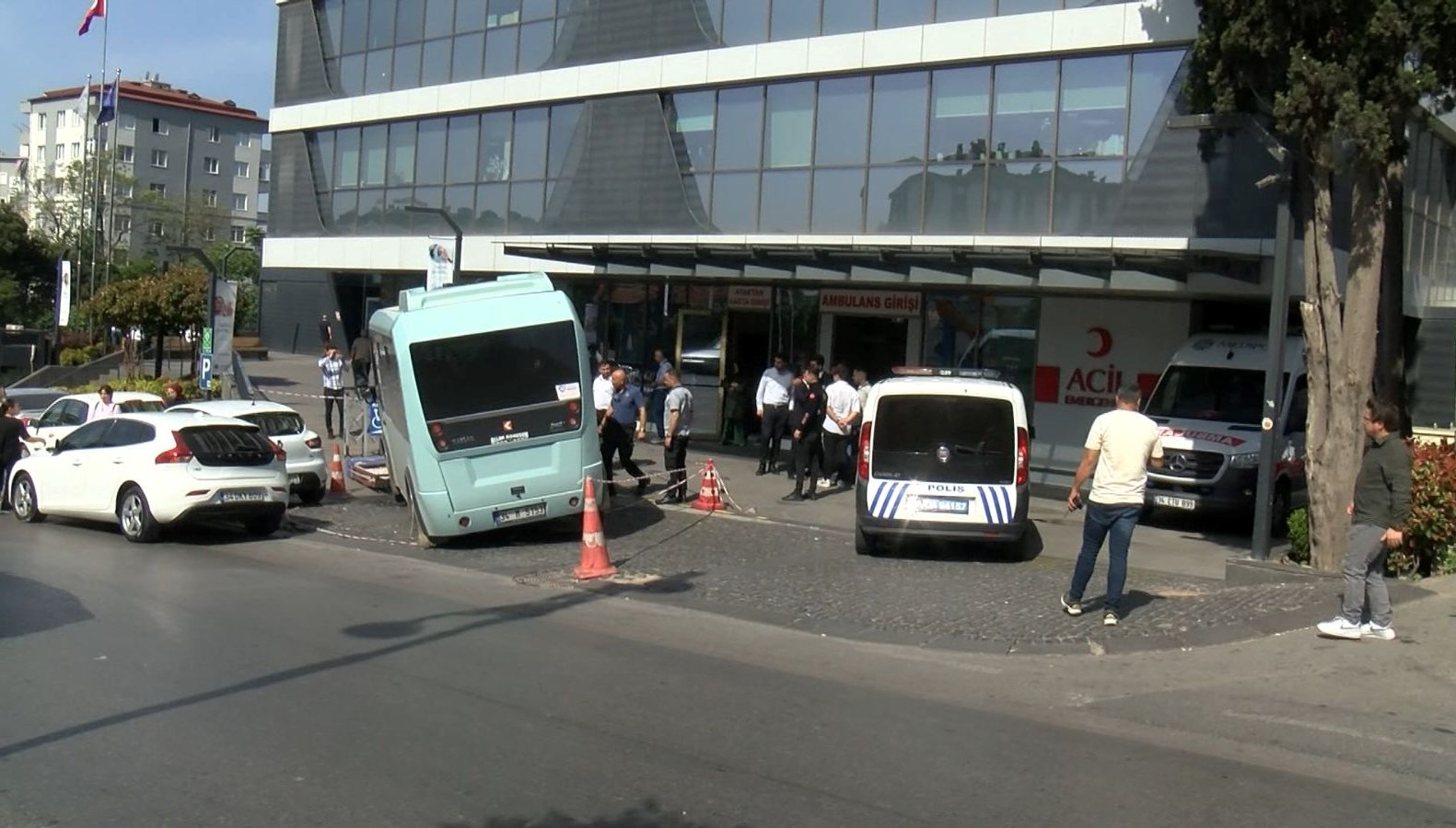 Minibüs özel bir hastanenin acil kısmının bahçesine daldı.
