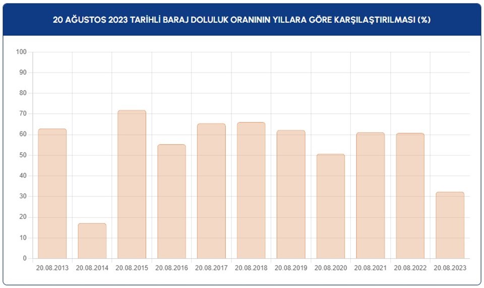 İstanbul’a su sağlayan barajlardaki doluluk oranı, yüzde 32.38 olarak ölçüldü.
