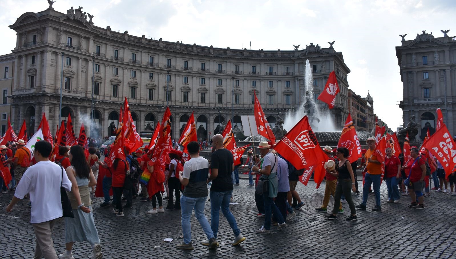 Büyük mitingde konuşan CGIL Genel Sekreteri Maurizio Landini, bir ülkenin zenginliğini üretenlerin çalışanlar olduğunu, bu nedenle çalışanların ürettiği zenginliğin yeniden çalışanlara dönmesi gerektiğini söyledi.