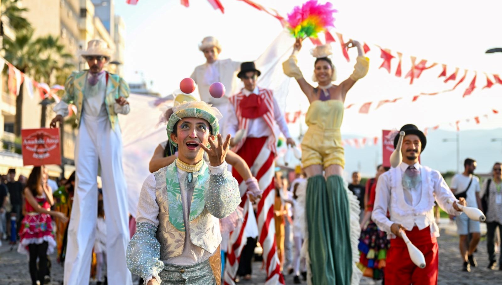 İzmirliler yürüyüş için saat 18.30’da, Cumhuriyet Meydanı’nda toplandı. Fuarın coşkusunun İzmirlilerle buluştuğu kortej, birbirinden renkli şovlara sahne oldu.