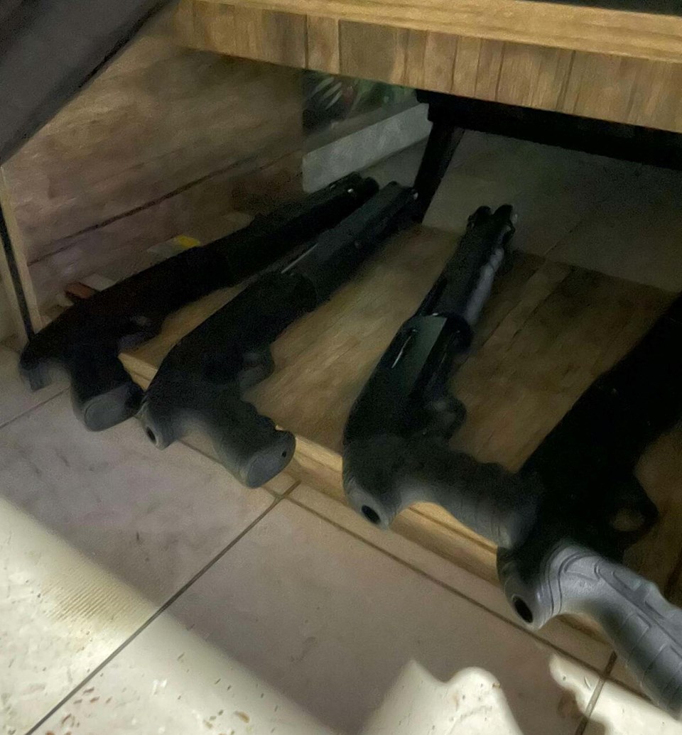 Bu şahısların adreslerinde yapılan aramalarda, ruhsatsız 10 tabanca, 11 pompalı tüfek, 1 kurusıkı tabanca, 213 farklı ebatlarda tabanca mermisi, 78 kartuş, 45 kurusıkı mermisi, 11 şarjör, 2 kasatura, 1 kelepçe ve bir ölçü uyuşturucu husus ele geçirildi.