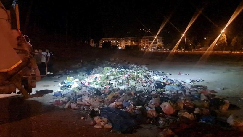 Kamyon içerisindeki yaklaşık 10 ton çöp, yere dökülerek kanıt araması gerçekleştirildi.