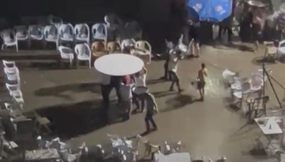 Yağmurdan korunmak için masanın altına geçen küme, halay çekmeye devam etti.