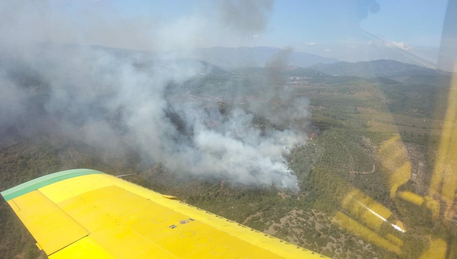 İhbar üzerine bölgeye, İzmir Orman Bölge Müdürlüğü’ne ilişkin 6 uçak, 8 helikopter, 25 arazöz, 7 su ikmal aracı ve 5 dozer sevk edildi.