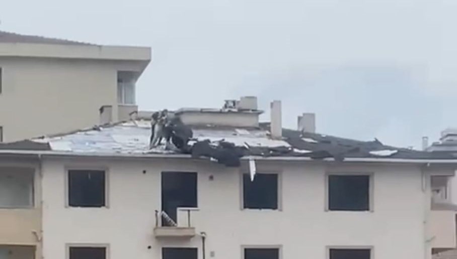 Çatıdaki tehlikeli çalışma cep telefonu kamerasıyla kaydedildi.