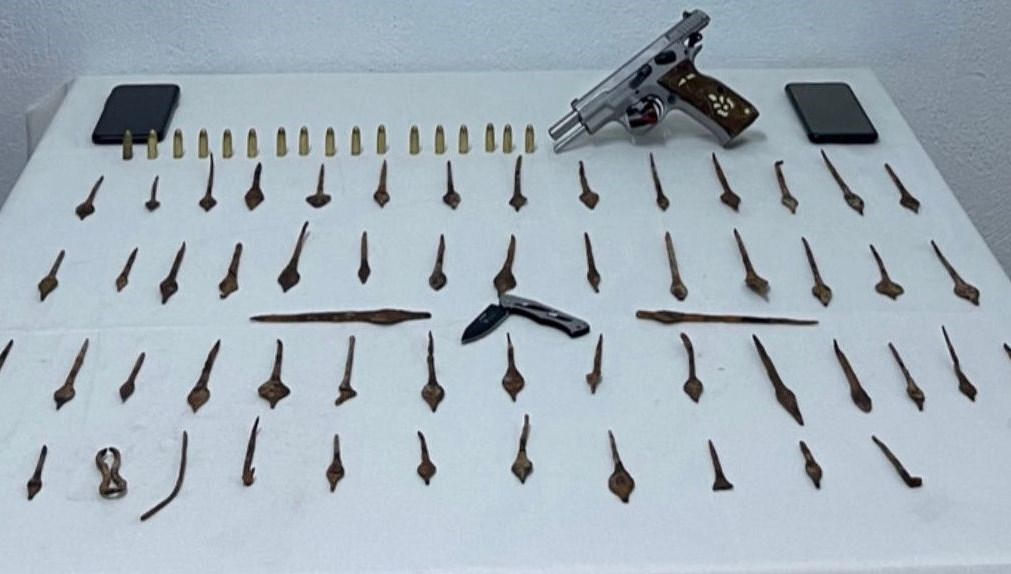 Belirlenen adrese Elbistan İlçe Jandarma Komutanlığı takımlarıyla düzenlenen operasyonda, Roma periyoduna ilişkin olduğu bedellendirilen 57 mızrak ucu, bir tabanca ile 17 mermi bulundu.