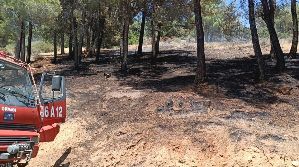 Soğutma çalışmalarının sürdüğü bölgede, 3 dönüm alanın ziyan gördüğü bildirildi.