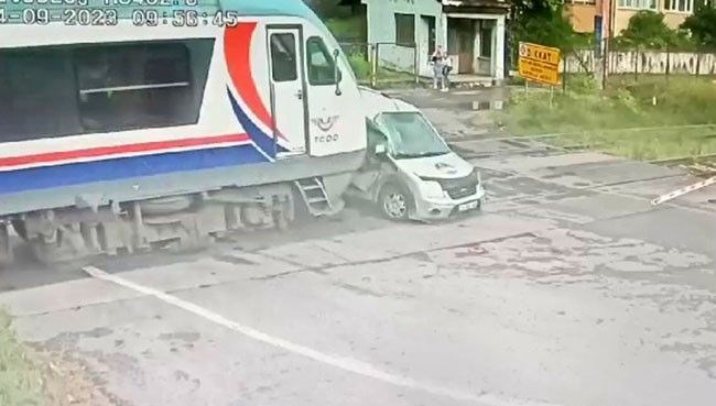 Bariyer kapalı olmasına karşın hemzemin geçide ilerleyen araca, H.D. yönetimindeki Zonguldak-Gökçebey yolcu treni çarptı.