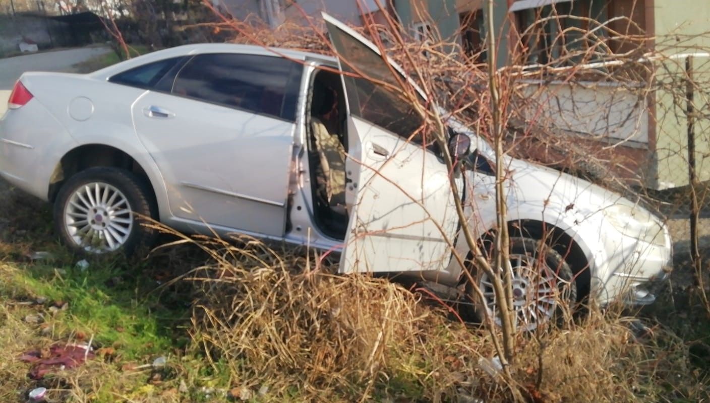 Karabük’te F.A. yönetimindeki araba, şoförünün direksiyon hakimiyetini kaybetmesi sonucu yoldan çıkarak bir sitenin bahçesine düşmek üzereyken istinat duvarında asılı kaldı.