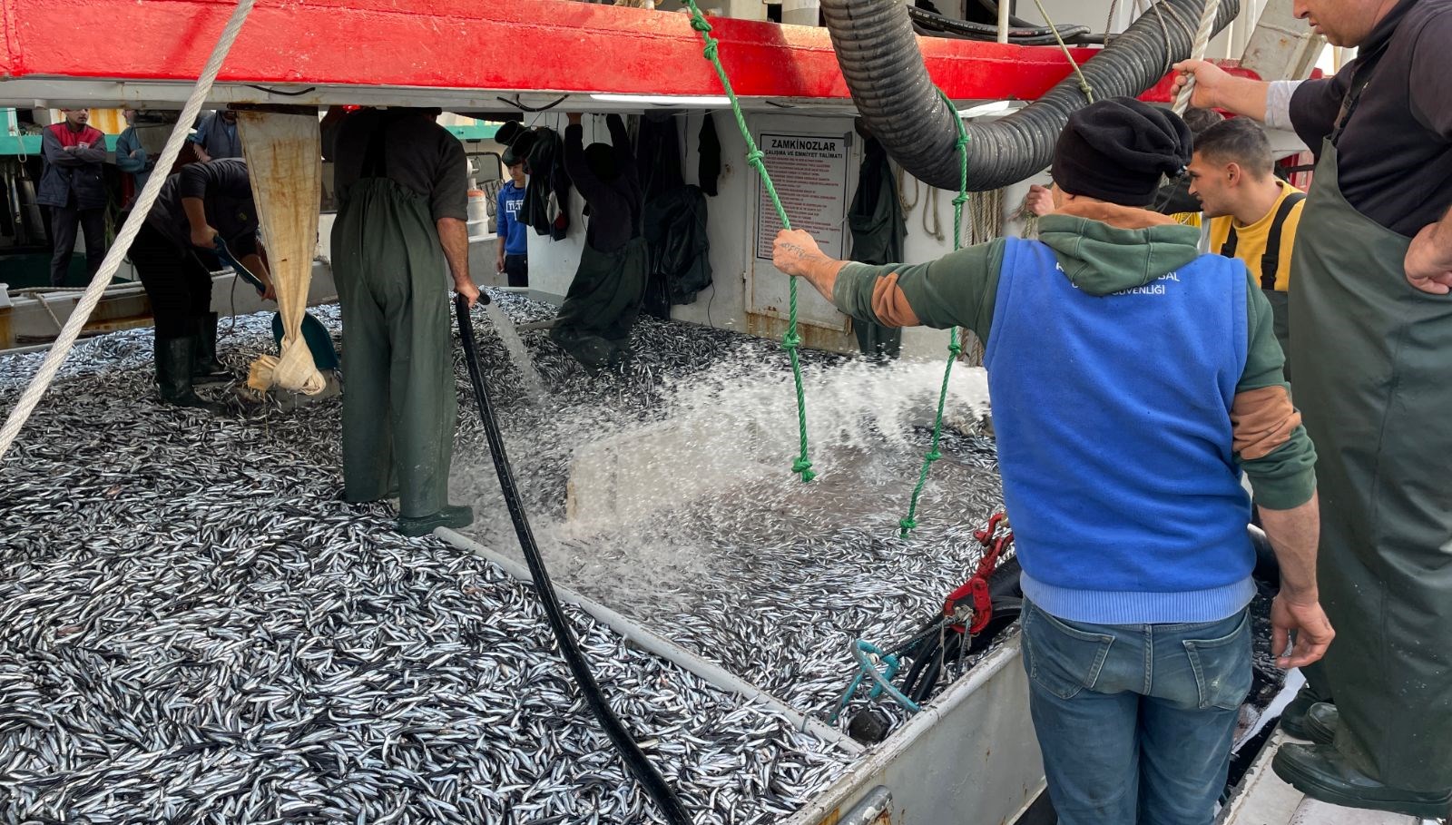 Özcan, hamsi bolluğu yaşandığını belirterek, “Allah’a şükür balık çok. Her sene bu türlü olmuyor. Başka teknelerde çok daha fazla var. Bu bolluk inşallah bu türlü devam eder.” diye konuştu.
