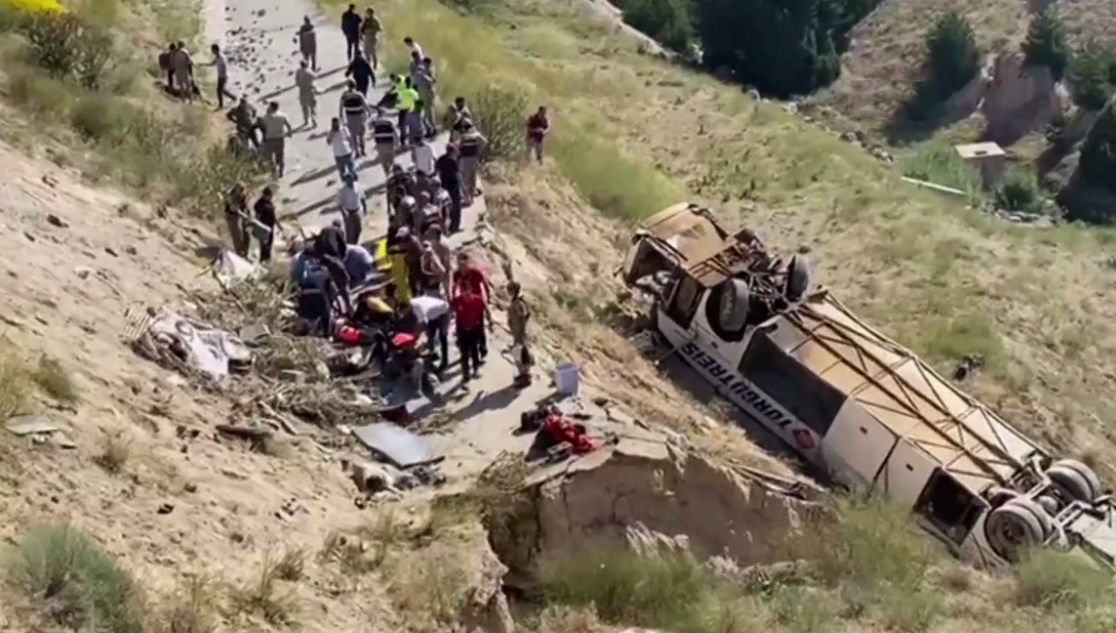 Yaklaşık 50 metre yükseklikten düştükten sonra zıt dönen otobüsteki 7 kişi ömrünü yitirdi, 22 kişi yaralandı.