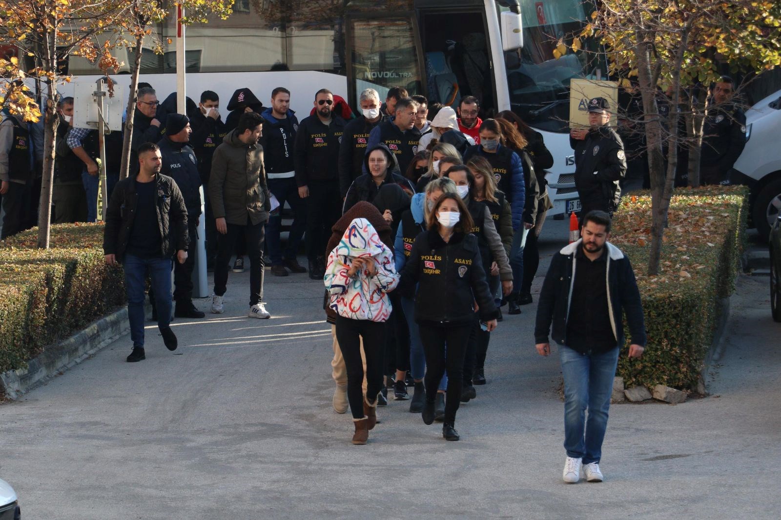 Teknik ve fiziki takibin akabinde polis takımlarının geçen yıl kasım ayında Eskişehir’in yanı sıra İstanbul, Gaziantep, Samsun, Çanakkale, Afyonkarahisar, Kütahya, Antalya, Balıkesir’in merkez ve Edremit ilçeleri ile Manisa’nın Akhisar, Muğla’nın Bodrum ilçelerinde belirlenen 41 adrese düzenlenen operasyonlarda 48 kuşkulu gözaltına alındı.