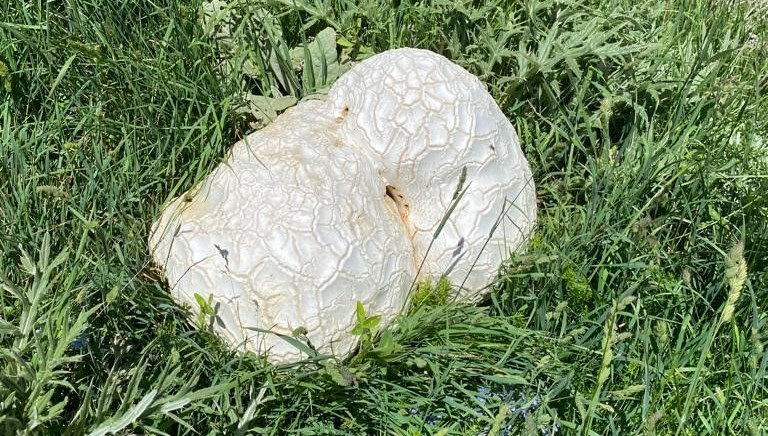 Yürüyüş esnasında farklı bir kaya bulduklarını düşünün iki arkadaş, kayaya benzettikleri cismin dev bir mantar olduğunu anladı.