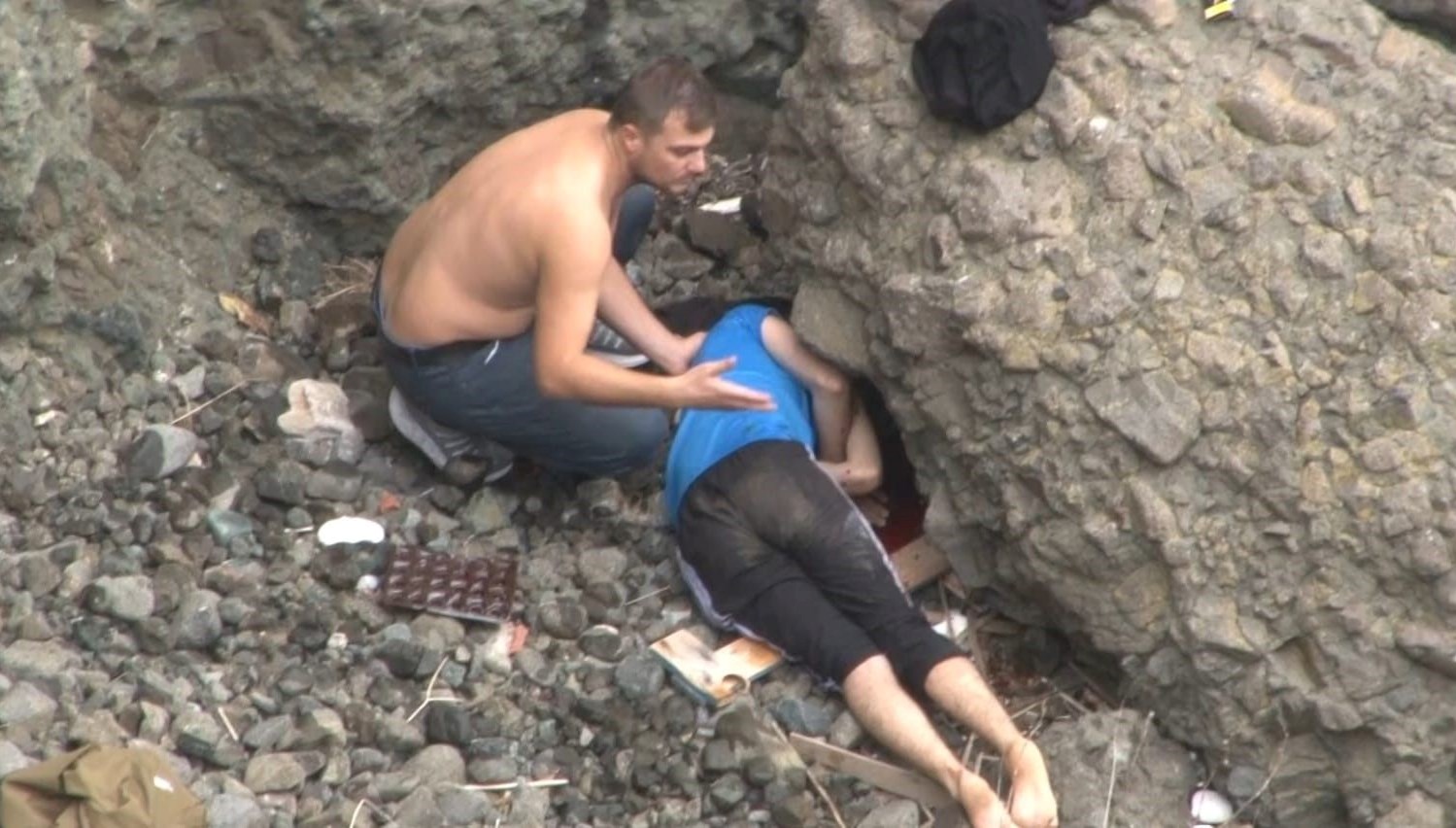 Garipçe Köyü’nde gezmeye gelen Ferhat Kurnaz ve Vehbi Kılıç isimli iki arkadaş, kıyıdan ilerlerken kayalıklara tırmandı.