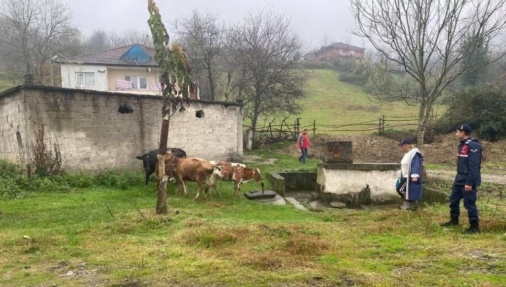 Gökçebey İlçe Jandarma Komutanlığı, vatandaşların bildirimi üzerine başıboş dolaşan dört büyükbaş hayvanı inançlı bir bölgede koruma altına aldı.