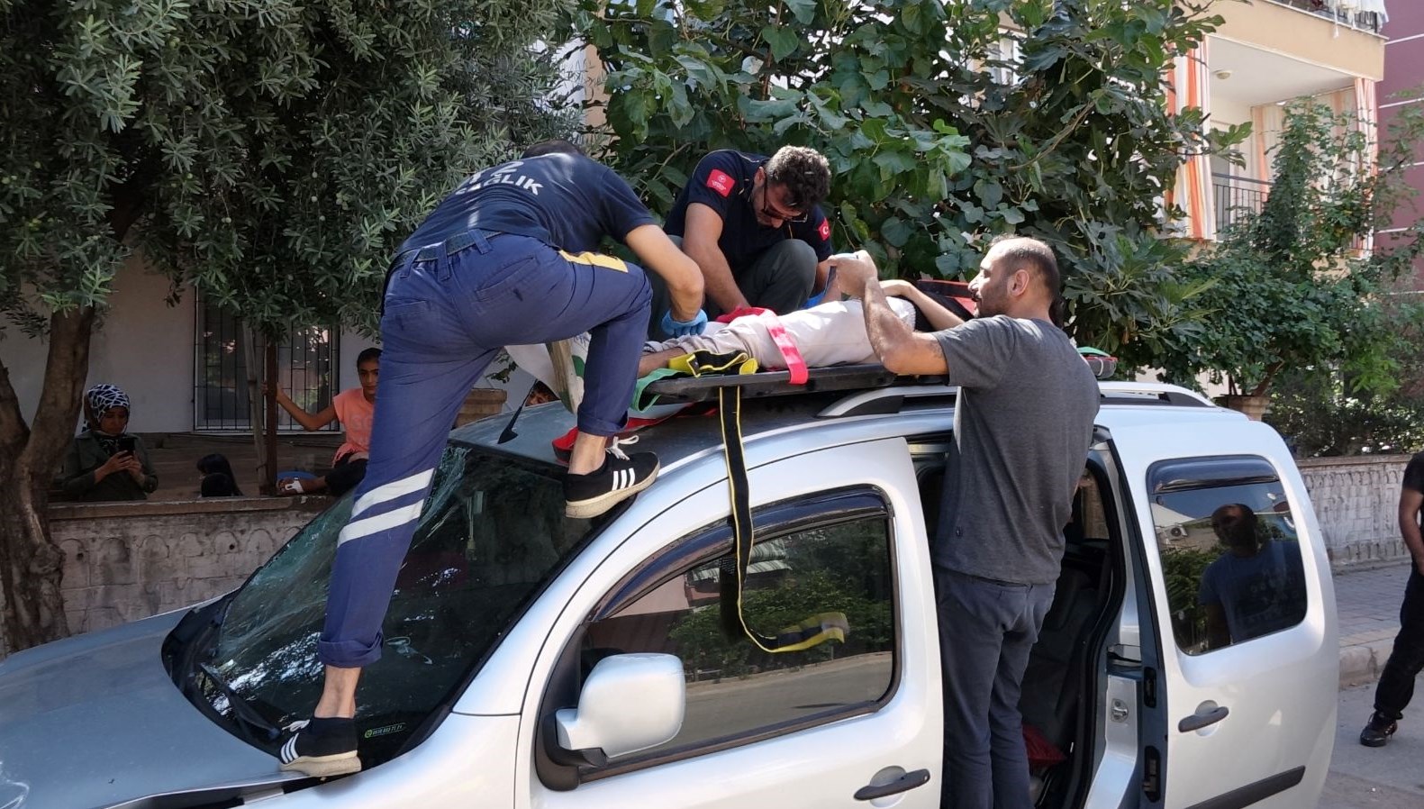 Kazazedeye birinci müdahale tavanına uçtuğu aracın üzerinde yapıldı
